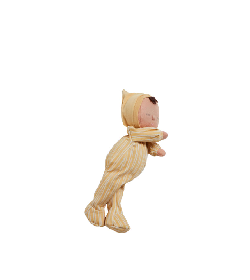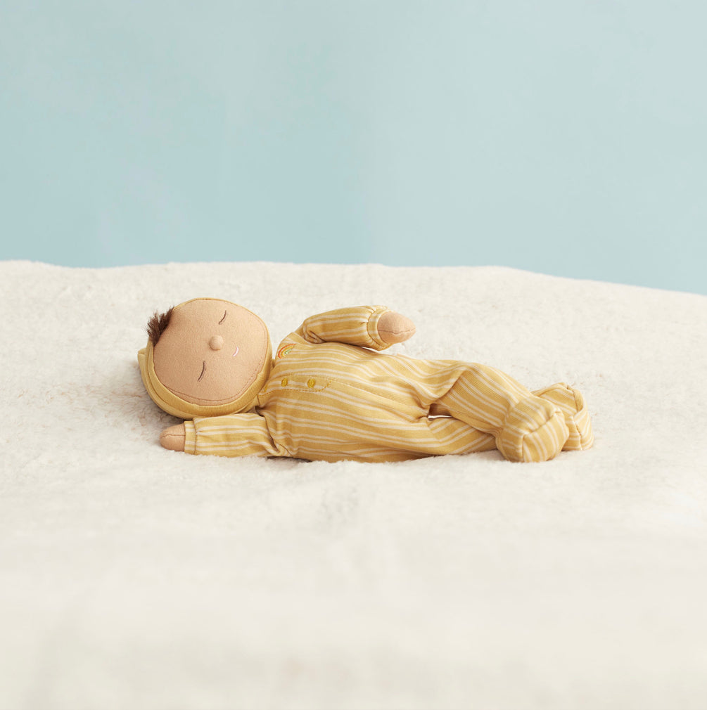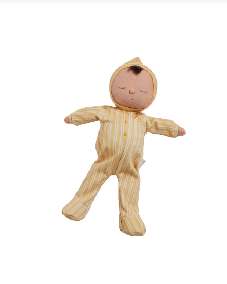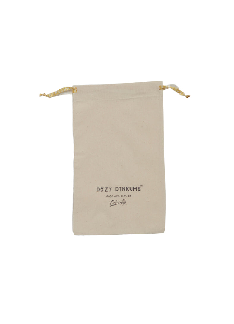 Sweetly-a-slumber and ready to snuggle, say hello to Dozy Dinkum Pip Goldie! This limited-edition Daydream Dozy is made from 100% Cotton printed in our vintage inspired Goldie, print. Soft and precious, Pip Goldie is made for cuddles and play and can't wait to snooze the days away with you! Pip Goldie is posable, made from super soft cotton and features the sweetest embroidered face with a little tuft of hair. Each Daydream Dozy Dinkum wears a non-removable suit complete with a rainbow right over their heart. Pip Goldie is a beautiful first gift for newborn babies or would make a lovely addition to your Dinkum Doll family for older kids too. Each Daydream Dozy arrives packaged in a soft 100% cotton bag with a matching drawstring! This bag also doubles as a handy laundry bag for your Dozy when they’re in need of a wash (make sure it’s a cool, gentle machine wash only!)