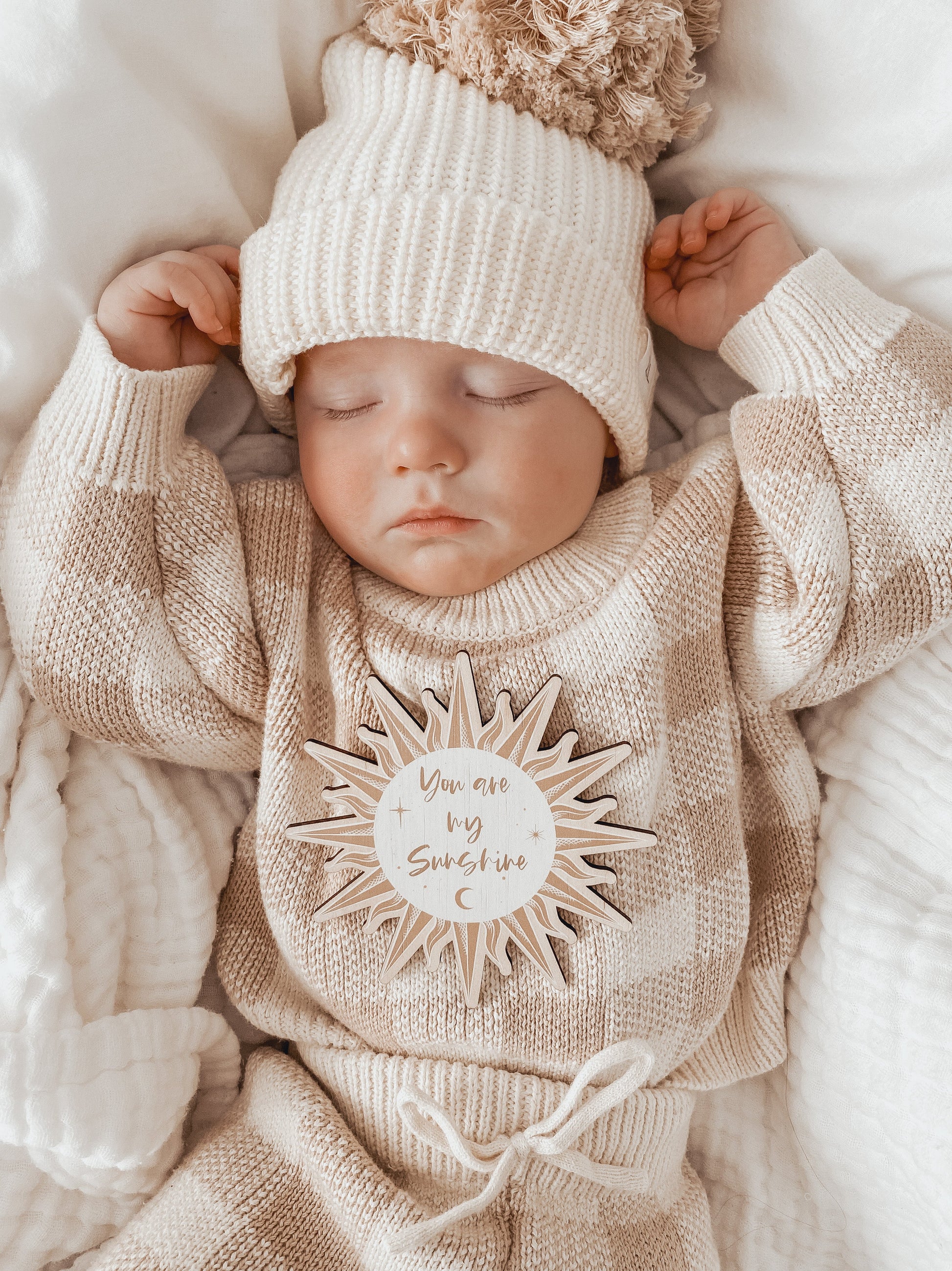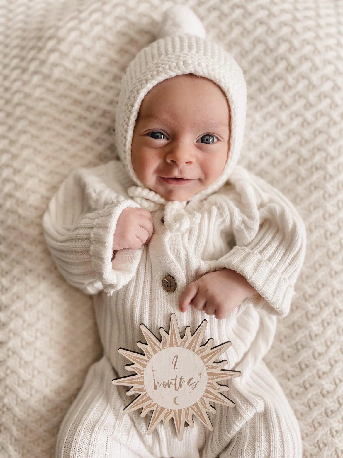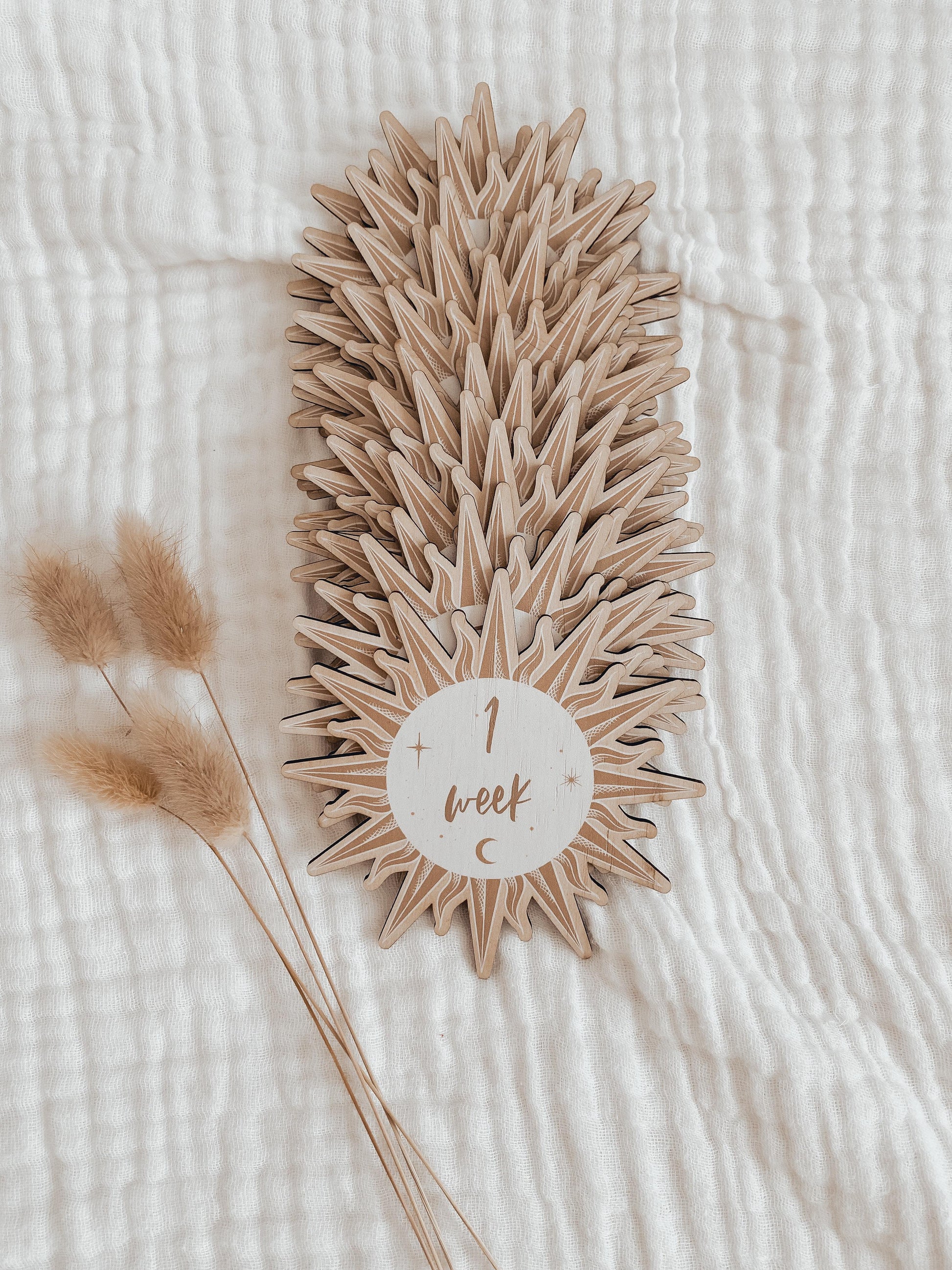 Capture your baby's special milestones with our beautiful Golden Sun Milestone Set. A perfect gift for a new baby or expecting mother.