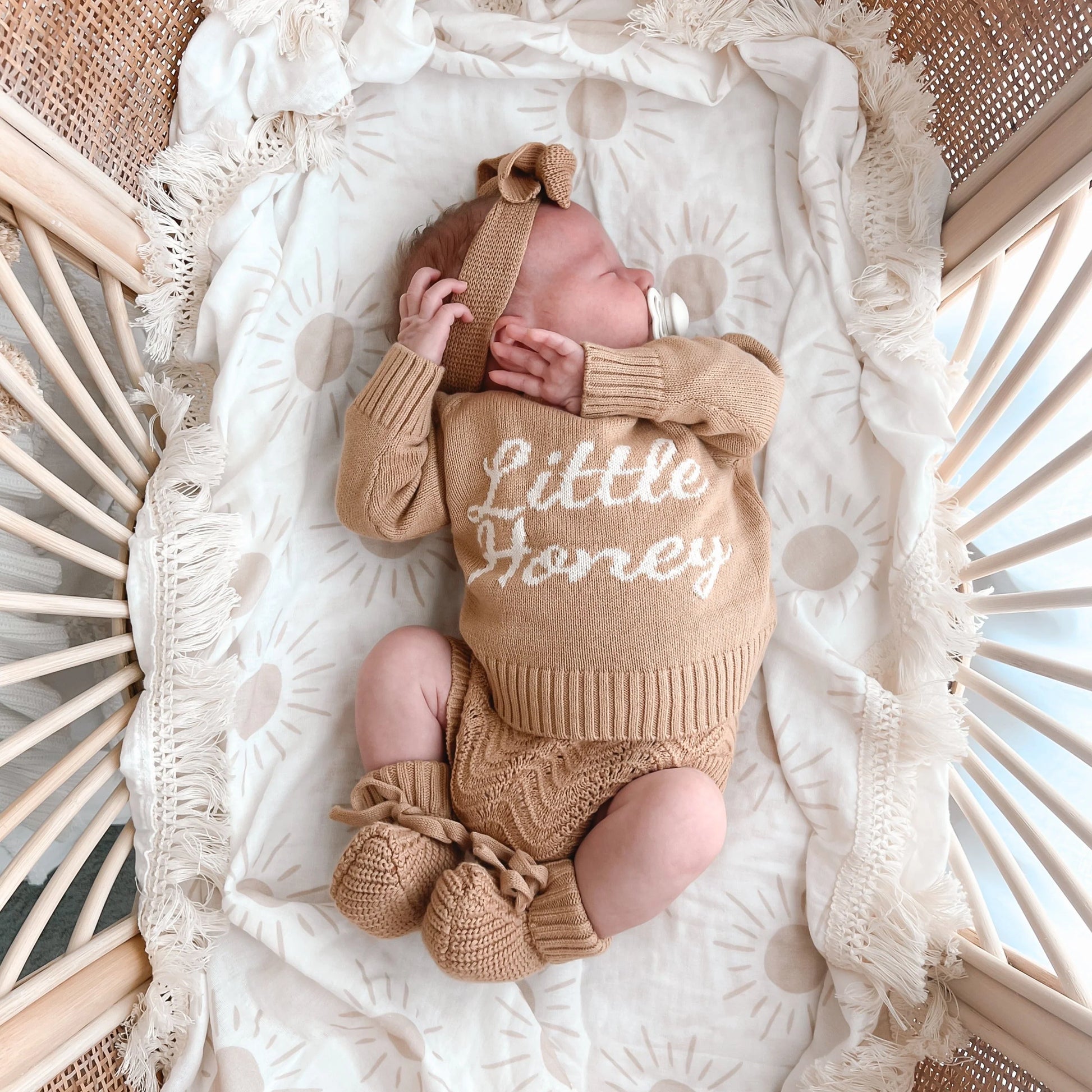 Our signature Little Honey Jumper! A gender neutral, oversized design with plenty of room to grow and get the maximum wear out of. A hospital bag staple and the most adorable piece to announce to the world your Little Honey is here.