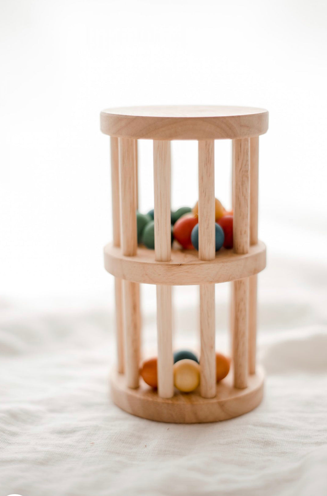 This beautiful wooden rain maker is the perfect toy to keep little hands and minds busy and has been designed to help with hand-eye coordination. Turn the tower upside down and watch the colourful balls cascading down! This toy offers a fun way for young people to explore the concept of gravity. Ethically made from plantation timber using non-toxic materials.