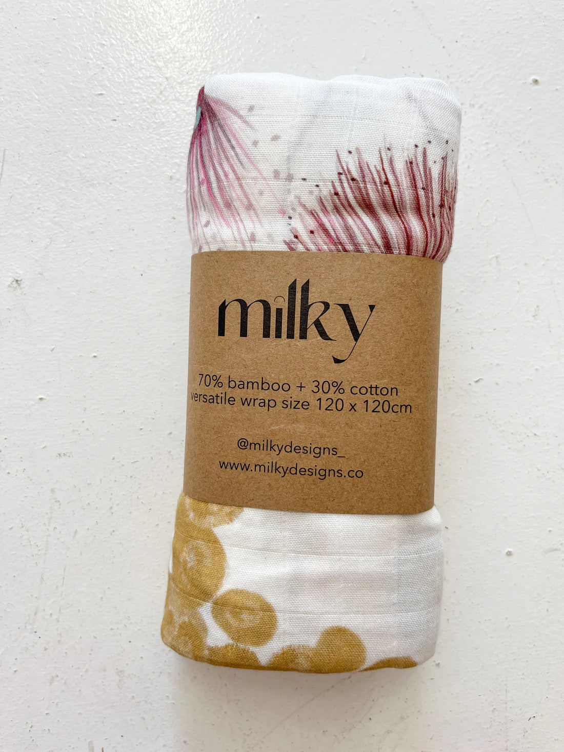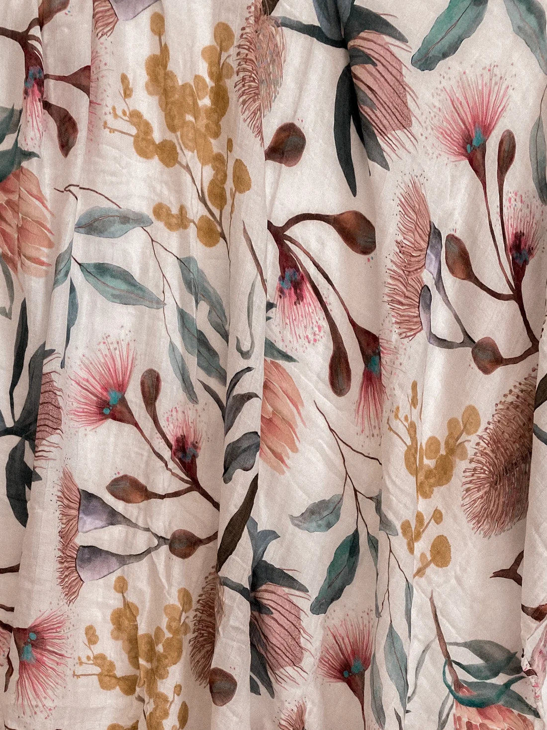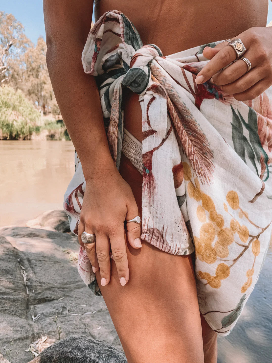 With versatility in mind, they can be used for swaddling, nursing, a lightweight blanket, pram covers and bassinet sheets and for our Mama’s they’re used as throws, outdoor towels and our favourite way, a sarong for the warm summer months.