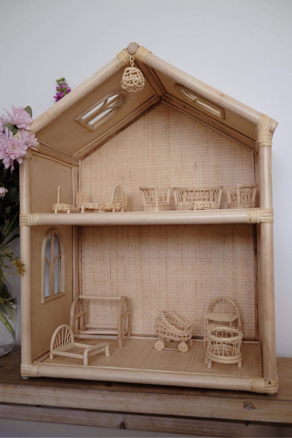 This Large two-storey Rattan Doll House is incredibly detail-oriented, it allows your little ones to rearrange their dolls and furniture miniatures inside.