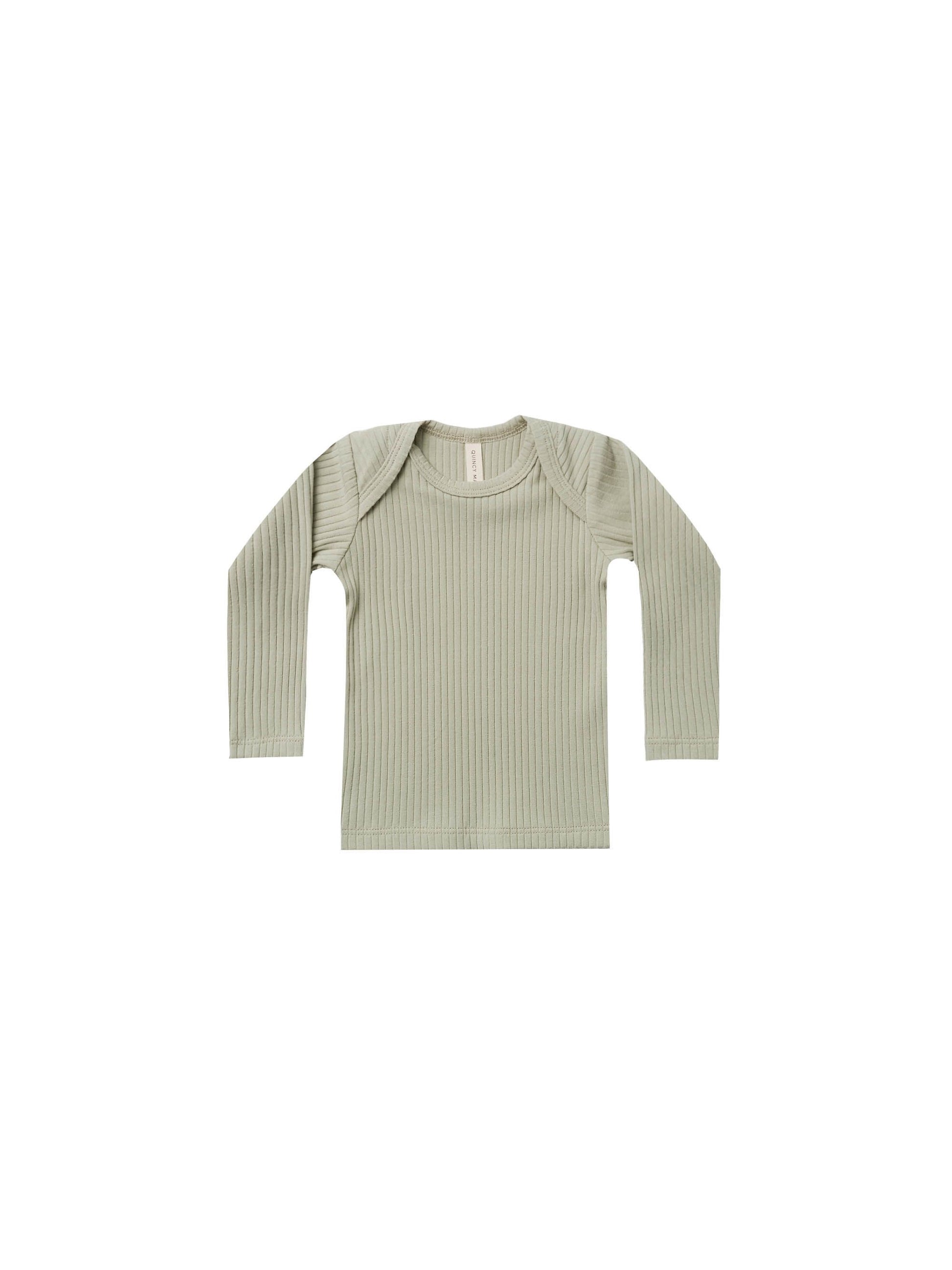 | 'Long sleeve lap tee in stretchy rib knit. Slim fit with added stretch to grow with your baby. Color: sage. Machine wash cold. Tumble dry low. Made of 97% organic cotton, 3% elastane' |
