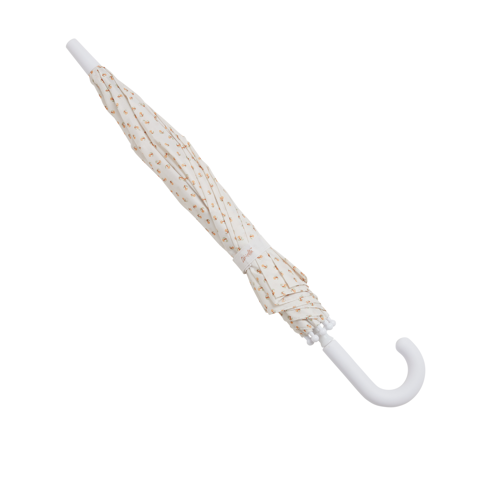 Made with recycled polyester, the See-Ya Umbrella provides shelter for kiddos age 3 and up. Lightweight for little hands and featuring a recycled polyester canopy in our signature Leafed Mushroom print, kids will feel independent with their own little umbrella.