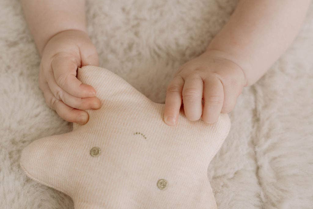 Available in 4 designs (seashell, palm tree, star fish + seahorse) these beautiful rattles are exclusively designed by us, featuring metallic gold stitching and are made with little hands in mind.